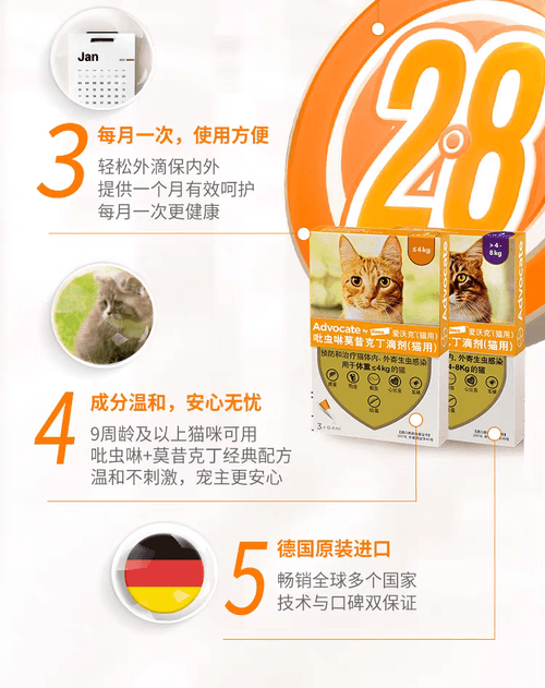 A powerful solution to protect your feline friend from 28 types of internal and external parasites, including fleas, ear mites, roundworms, hookworms, and heartworms.