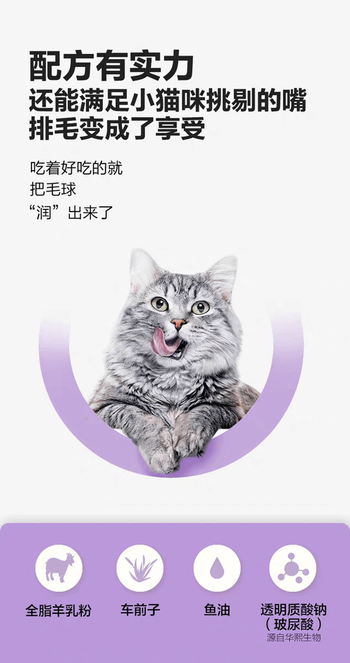 Enriched with goat milk powder, plantain, fish oil, and hyaluronic acid, it supports digestive health while improving coat quality. Its palatable, (glutinous) texture makes it a favorite even for picky eaters, ensuring your cat stays comfortable, energetic, and free from hairball troubles.